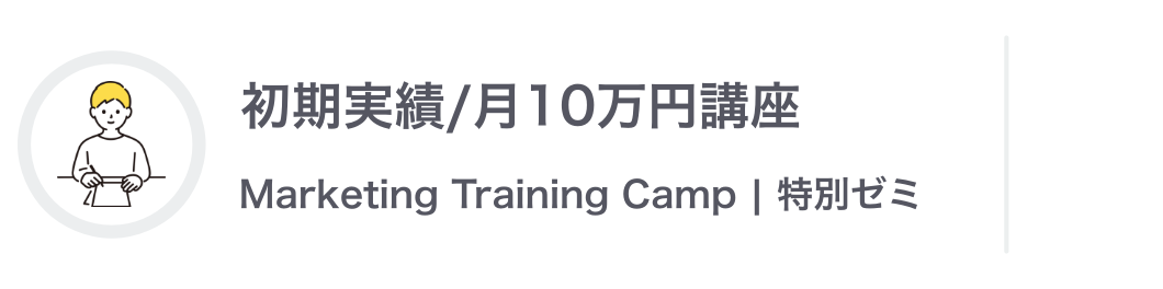 Marketing Training Campでは、月商300万円~500万円程度の売り上げを作り、数年間の間に数千万円の資産を作ることを目標として掲げています。そのために必要な基礎的なマーケティングについて学んでいただくのが、MTCの目的です。